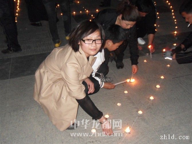4月18日晚,在市區(qū)五一廣場,網(wǎng)友點燃了為玉樹災(zāi)區(qū)祈福的蠟燭。