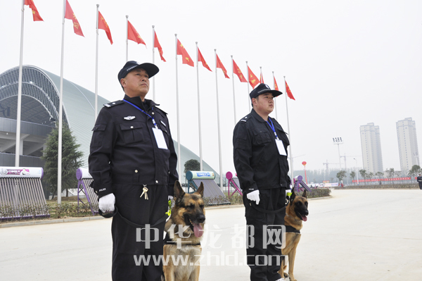 正在巡邏的警犬,承擔(dān)第二次運(yùn)動會的安保工作。