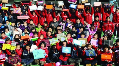 ????“鞋盒禮物”,在全世界100多個國家都舉辦過,本著互動、打破雙方隔閡的理念,倡導(dǎo)富裕家庭的孩子們自愿捐出自己的零用錢,和爸爸媽媽們一起為需要的孩子們準備禮物,并用鞋盒包裝起來送給困難家庭的孩子。在七橋小學(xué)的操場上,高高的一摞精心打扮過的“鞋盒禮物”堆在孩子們面前,有的還用水彩筆歪歪扭扭地寫著贈送祝語。這些都是南京市40多所中小學(xué)孩子準備的一部分。