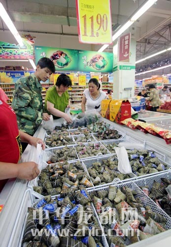 ?? 距離端午節(jié)還有一周的時間,但各大超市和大街小巷已飄起了粽香。6月6日,在周口市區(qū)的各大超市、賣場,多個品牌的粽子已擺上專柜。高檔禮盒裝粽子的數(shù)量明顯減少,大眾價位的粽子成為主流。不少超市還在柜臺的顯眼處,專門擺放了粽葉等包粽子用的原料供市民挑選。晚報記者 金月全 攝
