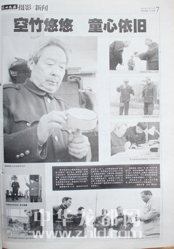 ????大家還記得2004年2月24日《周口晚報(bào)》刊登的一位經(jīng)常在濱河公園抖空竹的老人楊淋森嗎?熟知他的市民一定發(fā)現(xiàn),最近幾年在濱河公園怎么也找尋不到這位抖空竹的老人了。是老人抖空竹更換了地點(diǎn),還是老人搬遷到了其他城市?12月6日上午,帶著這些疑問,記者找到了78歲的楊淋森老人,聽他講述了與晚報(bào)結(jié)緣的故事,并了解了他時(shí)下的生活狀況。