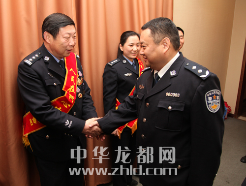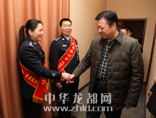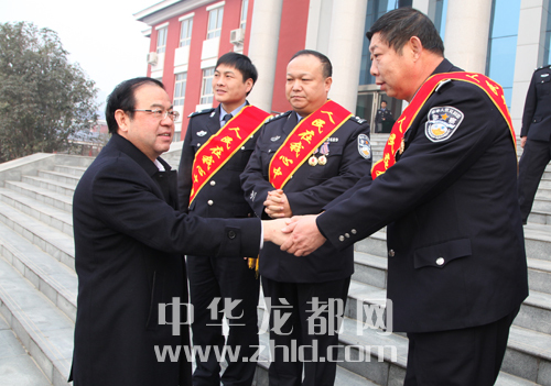 ????報(bào)告會(huì)前,周口市委常委、政法委書(shū)記朱家臣,副市長(zhǎng)劉國(guó)連,市政府黨組成員、公安局長(zhǎng)姚天民親切會(huì)見(jiàn)了報(bào)告團(tuán)成員并合影留念。