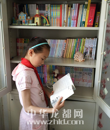 據(jù)了解,金株看得最多的是童話、文學(xué)類以及科普類書籍。金株有自己喜愛的作家,“楊紅櫻、曹文軒、伍美珍、郁雨君、楊鵬、沈石溪、黃蓓佳、湯素蘭、杰羅尼摩·斯蒂頓等等。”梁秀玲介紹,女兒剛上幼兒園的時(shí)候,自己給她買來《世界經(jīng)典童話》上下冊(cè),每天給金株念。女兒5歲的時(shí)候,梁秀玲就鍛煉金株把講過的故事復(fù)述出來,慢慢地金株能把故事完整地復(fù)述。梁秀玲又帶她買了一些童話書鼓勵(lì)她自己看。“每到周末,我就會(huì)帶著金株去逛書店,每次都要買書。她比較喜歡按照作者的系列叢書來收藏,現(xiàn)在家里的兩個(gè)書架都沒放下她的書,有300多本藏書?!?/p>