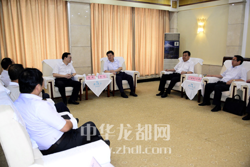 ????28日下午,徐光、劉繼標(biāo)等市領(lǐng)導(dǎo)親切會見中建七局黨委書記、董事長陳穎一行。(記者 沈湛 攝)