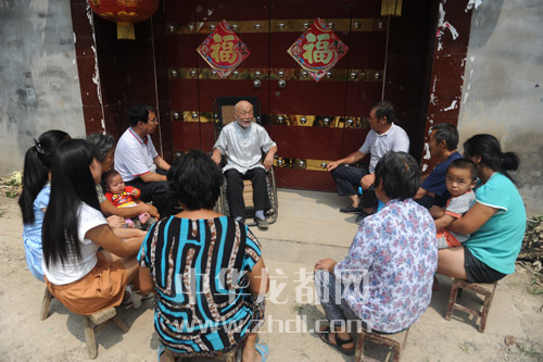 ????本報(bào)訊 全國上下慶??箲?zhàn)勝利70周年之際,96歲的鄲城籍抗戰(zhàn)老兵朱好德每天都關(guān)注各大電視臺播放的抗戰(zhàn)特別節(jié)目。由于1938年正月的黃河保衛(wèi)戰(zhàn)是老人家打得最過癮、打得最得意的一場戰(zhàn)役,8月26日,依照朱好德的意愿,朱家上下十幾口歡聚一堂,聽他講述炮火紛飛年代中華兒女血灑疆場殺日寇的故事(如圖)。
