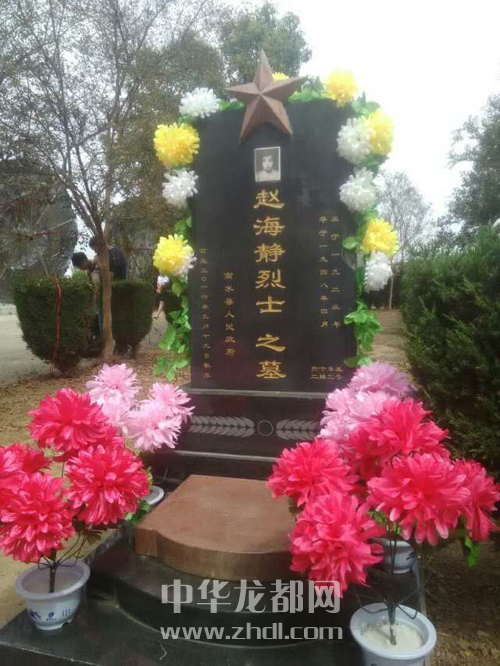 ????2015年10月,周口市鹽業(yè)局干部康國(guó)富和胡東周受市委組織部指派,到商水縣鄧城鎮(zhèn)周莊村駐村。2016年3月,康國(guó)富和胡東周在村里召開(kāi)黨員大會(huì)時(shí),偶然了解到趙海靜的事跡,深受感動(dòng)。他們經(jīng)過(guò)調(diào)查、走訪,確認(rèn)了趙海靜烈士的事跡。于是,他們先后向周口市委組織部、商水縣委組織部有關(guān)領(lǐng)導(dǎo)作了匯報(bào),懇請(qǐng)有關(guān)部門為趙海靜修墓立碑。他們的請(qǐng)求得到了市縣兩級(jí)組織部門的大力支持,鄧城鎮(zhèn)民政所和商水縣民政局聞?dòng)嵑笠卜e極配合。