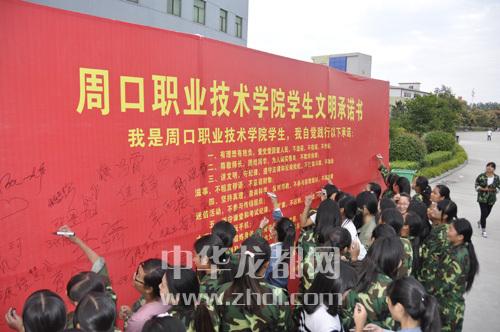 ????本報訊 昨日,周口晚報記者從周口職業(yè)技術(shù)學(xué)院了解到,新學(xué)期開始后,該校近萬名在校大學(xué)生簽訂了《學(xué)生文明承諾書》。承諾書中包含十條學(xué)生守則,為學(xué)生們的校園生活指明了方向。