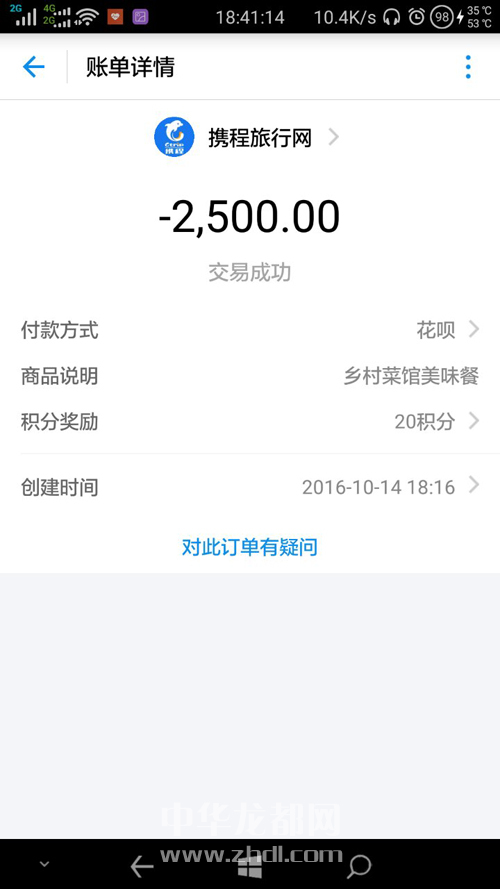 ????一番周旋后,小王意識(shí)到他已經(jīng)很難向?qū)Ψ揭刂Ц兜?500元,便查詢這筆錢的流向。根據(jù)賬單顯示,小王的2500元支付給了攜程旅行網(wǎng),另外兩筆未生成的交易收款方分別為攜程旅行網(wǎng)和北京世紀(jì)卓越信息技術(shù)有限公司。已經(jīng)支付的2500元最后通過攜程旅行網(wǎng)流向了百度糯米訂餐軟件中的一家名叫“鄉(xiāng)村菜館”的店鋪(圖5)。
