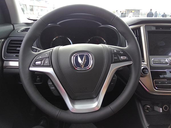 內(nèi)飾整體的造型設(shè)計(jì)凹凸有致,層次清晰。三幅式多功能方向盤(pán)尺寸大小合適,軟性材質(zhì)的包裹也讓車內(nèi)做工顯得比較細(xì)膩。