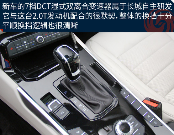 由于渦輪介入的時間稍晚一些,起步時不會讓你感覺特別的輕快,但也不會差到讓你無法接受,只要保持平常心就好;當(dāng)這臺2.0升的渦輪增壓直噴發(fā)動機(jī)真的卯足了勁發(fā)力之后,360牛米的最大扭矩完全不是鬧著玩的,后背感覺有人在猛使勁的把你向前推。長城自主研發(fā)的7擋濕式雙離合變速器是新車的一大亮點,日常駕駛的過程中升降檔都有著不錯的平順性,不過起步初期離合器結(jié)合的速度還是稍微有一些慢,急加速時變速箱的反應(yīng)也不夠靈敏,這在一定程度上拖累了整體的動力表現(xiàn)。