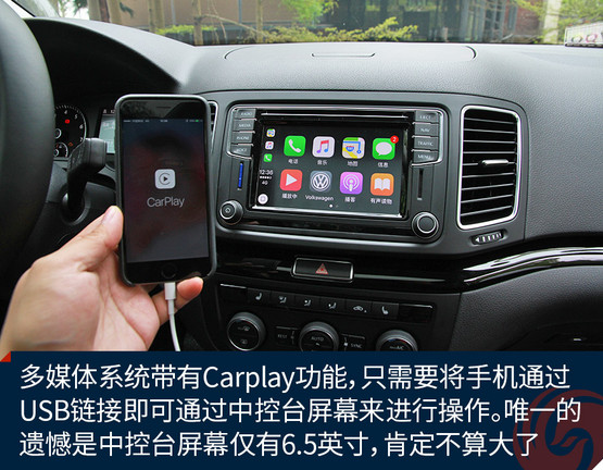 內(nèi)飾方面,夏朗仍然傳承著大眾品牌的經(jīng)典設(shè)計(jì)風(fēng)格,基本不用分辨就知道這是一款大眾汽車(chē)。中央的多媒體系統(tǒng)功能豐富,并且?guī)в蠧arplay功能,只需要將手機(jī)通過(guò)USB鏈接即可通過(guò)中控臺(tái)屏幕來(lái)進(jìn)行操作。唯一的遺憾是,夏朗的中控臺(tái)屏幕僅有6.5英寸,在現(xiàn)在看來(lái)肯定不算大了。