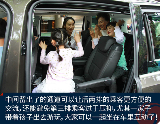 中間留出了的通道可以讓后兩排的乘客更方便的交流,還能避免第三排乘客過(guò)于壓抑,尤其一家子帶著孩子出去游玩,大家可以一起坐在車(chē)?yán)锘?dòng)了!