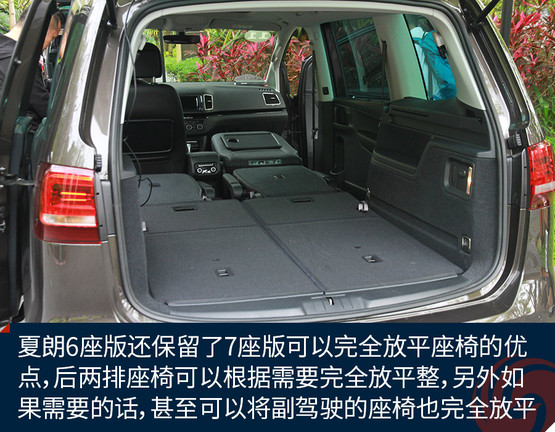 同時(shí),夏朗6座版還保留了7座版可以完全放平座椅的優(yōu)點(diǎn),后兩排座椅可以根據(jù)需要完全放平整,只不過(guò)6座版在第二排中間會(huì)有個(gè)洞,不像7座版那么完美。另外如果需要的話,甚至可以將副駕駛的座椅也完全放平,將夏朗變成一款“商用車(chē)”。