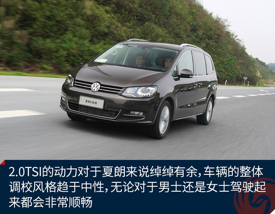 在駕駛方面,大眾汽車(chē)一貫的沉穩(wěn)風(fēng)格在夏朗上得到進(jìn)一步升華,畢竟這是一款注重家用的MPV車(chē)型。2.0TSI的動(dòng)力對(duì)于夏朗來(lái)說(shuō)綽綽有余,車(chē)輛的整體調(diào)校風(fēng)格趨于中性,這也是大眾品牌所崇尚的風(fēng)格,所以夏朗這款車(chē)無(wú)論對(duì)于男士還是女士駕駛起來(lái)都會(huì)非常順暢,對(duì)于一個(gè)家庭來(lái)說(shuō)不同的駕駛者都會(huì)對(duì)夏朗的駕駛感受表示滿意的。