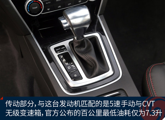 本次我們試駕的獵豹CS10搭載了一臺1.5T渦輪增壓氣發(fā)動機,最大功率為110kW/5500rpm,最大扭矩為210N.m/2000-4500rpm。傳動部分,與這臺發(fā)動機匹配的是5速手動與CVT無級變速箱,并采用前置前驅(qū)的驅(qū)動形式。