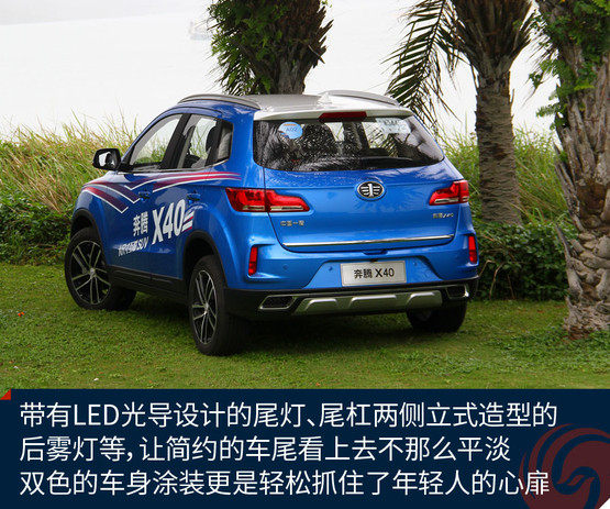 奔騰X40定位于一款小型SUV,雖然家族式的六邊形格柵線條依然有點(diǎn)生硬,但頗具馬自達(dá)神韻的大燈、帶有京劇臉譜線條的前臉、時(shí)尚前衛(wèi)的雙色車身等,都讓它向目前大家更看重的顏值路線更近一步。能在第一眼抓住年輕人的心,這款車就成功了一半。