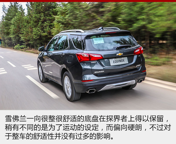探界者的底盤受到雪佛蘭運(yùn)動(dòng)傾向的影響,被調(diào)校的有些偏硬,這樣對(duì)于車身側(cè)傾的抑制就非常到位,面對(duì)路面上連續(xù)的起伏,緊致的懸架也帶來很強(qiáng)的整體感。但是當(dāng)面對(duì)較大的顛簸或者減速帶一類的時(shí)候,車身就會(huì)產(chǎn)生彈跳的感覺,而且懸架的回彈稍有延遲,總有一次小幅度的二次彈跳,稍稍影響了舒適性。