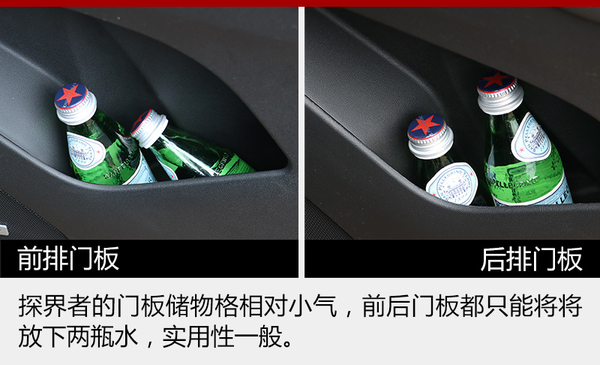 探界者作為一臺(tái)中型SUV在儲(chǔ)物空間的表現(xiàn)其實(shí)有些平庸,不算多的儲(chǔ)物格除了扶手箱以外基本沒有亮點(diǎn),而且門板的儲(chǔ)物格也比較不實(shí)用;后備箱的空間倒是值得肯定,無論是座椅放倒后的平整和可擴(kuò)展性,還是蓋板下方的小儲(chǔ)物格,都很靠譜。