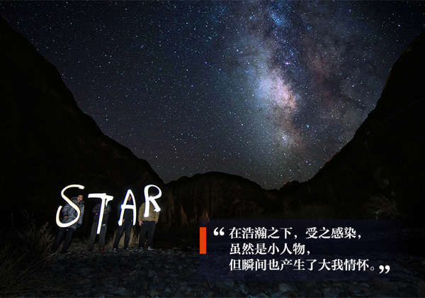 墨分五色,暗與黑之間也相隔甚遠(yuǎn),但你正可以在此時(shí),借助月光,找到一個(gè)好的觀測和拍攝角度。車這個(gè)伙伴,也在前照燈的照明下,趟過流水,踏上卵石,陪你一起等待即將而來的精彩。