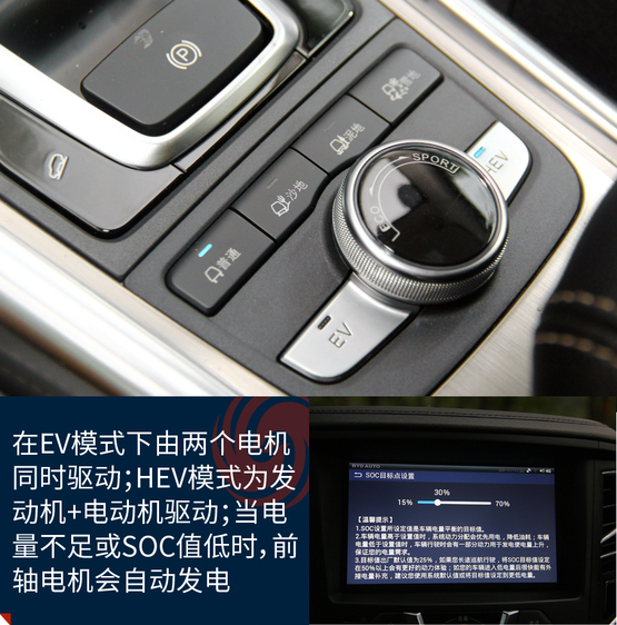EV的純電模式下車輛由前后兩個電機同時驅(qū)動;在HEV的混動模式下發(fā)動機和雙電機都會提供動力驅(qū)動車輛;當電量不足時,前電機則轉(zhuǎn)變成發(fā)電機,發(fā)動機通過前電機為電池充電,同時也為前輪提供動力,此時車輛由發(fā)動機和后電機同時驅(qū)動。