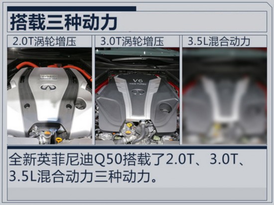 動(dòng)力方面,全新英菲尼迪Q50搭載了2.0T、3.0T渦輪增壓發(fā)動(dòng)機(jī)。2.0T渦輪增壓發(fā)動(dòng)機(jī)最大功率155kW;3.0T渦輪增壓發(fā)動(dòng)機(jī)最大功率298kW。此外,新車(chē)還增搭了一臺(tái)3.5L V6混合動(dòng)力發(fā)動(dòng)機(jī),屆時(shí)油耗將大幅下降。