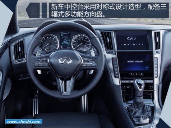 全新英菲迪尼內(nèi)飾配有三輻式多功能方向盤(pán),中央控制臺(tái)為對(duì)稱(chēng)式造型,采用上下雙顯液晶屏幕。此外,新車(chē)還配備了撥片式換擋、一鍵啟動(dòng)、電子手剎等配置。