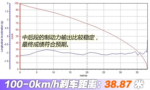 ????全力制動(dòng)時(shí)車(chē)身有點(diǎn)頭的現(xiàn)象,但車(chē)身總體保持穩(wěn)定,最終成績(jī)?yōu)?8.87米,表現(xiàn)符合預(yù)期。這個(gè)成績(jī)?cè)谄?chē)之家的評(píng)價(jià)體系中,也屬于優(yōu)秀水平。