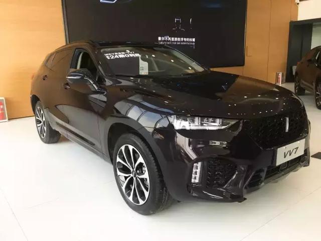 VV7車系下分VV7c和VV7s兩款車,VV7s細節(jié)設(shè)計上更為運動,配置更高一些,VV7c暫時不賣了,問銷售也不知道為何,展車也都是VV7s,白色是頂配,因為太火爆很難拍到周圍沒有人的時候。