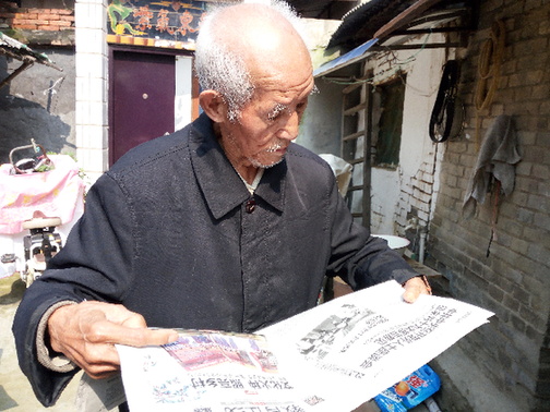 九旬老人眼不花愛(ài)看報(bào)