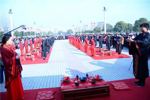 記者在現(xiàn)場(chǎng)看到,16對(duì)新人在司儀的引導(dǎo)下,采用中國(guó)古典婚禮儀式,有牽紅線、結(jié)發(fā)、拜天地等程序,儀式簡(jiǎn)單而隆重,新人家屬、1000多名市民圍觀見(jiàn)證了新人喜結(jié)連理。