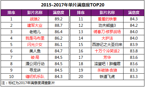 2017年影市增量更保質(zhì),年度滿意度明顯拉升