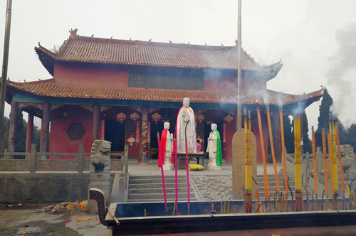 站在殿內(nèi)祭拜的“善童”(民間稱呼,即虔誠的香客)張新蘭以她的親身經(jīng)歷印證了趙俊明的話。今年75歲的張新蘭是西華縣紅花鎮(zhèn)人,她經(jīng)常到昆山女媧宮敬奉女媧娘娘?!拔矣浀煤芮宄?,1993年陰歷三月初九昆山女媧宮大殿奠基,當天我就在現(xiàn)場,我們這些‘善童’都自發(fā)捐物捐錢,我還從家里拿木料過來捐到殿里。”張新蘭說。