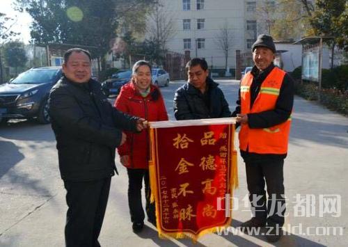 “失主丟了東西肯定很著急?!眲⒐椧贿呉贿叺龋诤L(fēng)中一等就是3個小時。終于,貌似失主的張先生和妻子行色匆忙的來到皂角樹廣場,劉公綏看到兩人比較著急,便主動上前詢問。經(jīng)詢問后確定他們就是失主,當(dāng)即物歸原主。為表達(dá)謝意,三天后,失主張先生把一面寫有“拾金不昧,品德高尚”的錦旗親手送到劉公綏手上。