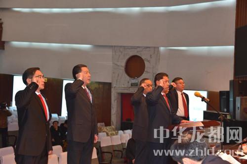 白建偉、王勝強、翟勝遠(yuǎn)、宋玉民、徐永豪在王銀河領(lǐng)誓下公開向憲法作就職宣誓。