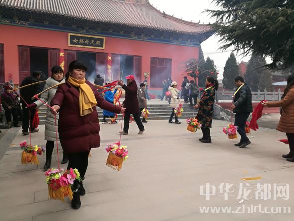 耿寶山所說的“歷久彌新”很容易就在記者采訪當天得到了證明:3支經(jīng)挑舞隊伍在女媧城里往來穿梭,不僅表演內(nèi)容多樣、富于創(chuàng)新,還都用上了現(xiàn)代化音響設備。除了經(jīng)挑舞,女媧陵前還有竹馬旱船表演、墜子書表演、經(jīng)歌表演等,都與盤古女媧傳說相關(guān),引人入勝。