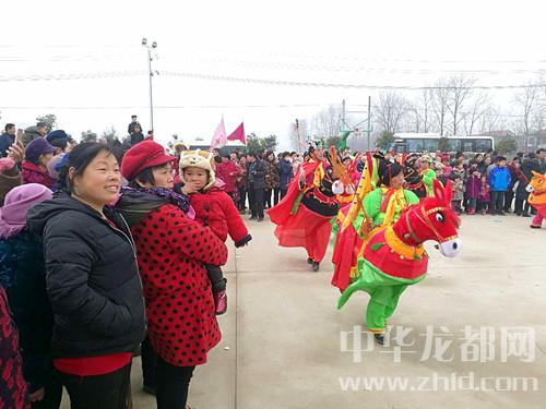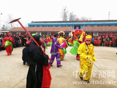 “前幾年農(nóng)閑真是把人閑得心慌,每天都是吃飽等餓、仰著臉上曬日頭?,F(xiàn)在黨的政策好,幫俺提起了精氣神兒,俺村20多個老頭老太太組成一支竹馬旱船腰鼓花棍廣場舞隊,年輕的時候會一點,現(xiàn)在見演出就來學(xué)一點,上一次李全林縣長晚上住俺這里幫扶,在俺這里看演出,說俺也成專業(yè)隊了?!边@個群眾隊的隊長是78歲的羅有德、扮相是孫悟空,旱船里的“花媳婦”是80歲的郭蘭英。連續(xù)15分鐘的蹦跳表演之后摘掉面具接受記者采訪時,群眾們都不敢相信他們這么大年齡還跳得這么起勁兒?!澳銈兊难莩鲫犆痔L了”記者說,“哈哈哈哈,俺老頭老太太都是‘三板斧’,也不會起名字,會的這幾招兒都寫到名字上了?!绷_有德、郭蘭英大笑著回答。