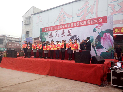 中華龍都網(wǎng)訊(周口報(bào)業(yè)全媒體記者 謝永靜)3月3日上午,扶溝縣韭園鎮(zhèn)黨委、政府大院旁的廣場上人潮涌地。從十里八村趕來的人們匯集于此,在欣賞完精彩紛呈的舞獅子、劃旱船和鑼鼓表演后,共同參加該鎮(zhèn)第十六屆“孝子孝媳”暨“最美家庭”表彰大會(huì),接受一次孝道教育和精神洗禮。副縣長胡東輝、縣委宣傳部副部長張根、縣文明辦主任高景衛(wèi)、韭園鎮(zhèn)黨委書記謝清泉、鎮(zhèn)長王朋云等參加大會(huì)。