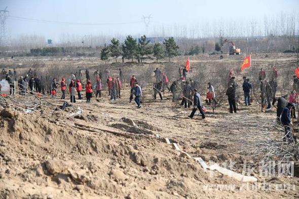 在周口森林公園植樹基地現(xiàn)場,劉繼標(biāo)、王富興、牛越麗等揮鍬鏟土填入樹坑、培實(shí)新土,各個環(huán)節(jié)大家一絲不茍、分工協(xié)作、配合默契,為周口綠色生態(tài)城市建設(shè),培植下一片片新綠。