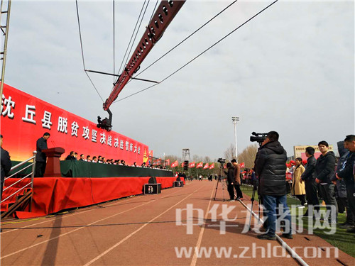 中華龍都網(wǎng)訊(周口報(bào)業(yè)全媒體記者韋偉 通訊員王佳佳)2018年3月16日10點(diǎn),沈丘縣新區(qū)廣場(chǎng),一場(chǎng)近萬(wàn)人參與的脫貧攻堅(jiān)決戰(zhàn)決勝誓師大會(huì)正在有序推進(jìn)。
