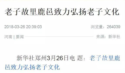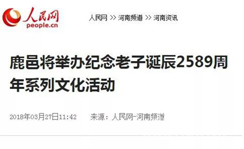 中華龍都網(wǎng)訊(周口報業(yè)全媒體記者 李瑞才 文/圖)再過幾天(本周六),就是老子誕辰2589周年了。為進一步推動老子文化與縣域建設深度融合,把老子文化這張牌打響擦亮,2016年年初鹿邑縣恢復舉辦了“老子生日拜典暨河南省非物質(zhì)文化遺產(chǎn)展演系列活動”這一文化盛事,使得老子故里的文化感染力和影響力不斷增強。今年3月31日至4月30日(農(nóng)歷二月十五日至三月十五日),鹿邑將繼續(xù)在縣城和太清宮景區(qū)舉辦2018年老子文化系列活動。連日來,新華社、人民網(wǎng)、光明網(wǎng)等中央主流媒體再次聚焦鹿邑,紛紛為老子故里這一文化旅游產(chǎn)業(yè)發(fā)展盛事宣傳造勢……