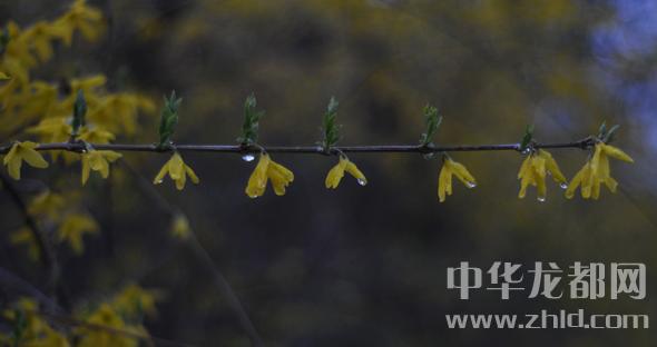 中華龍都網(wǎng)訊(周口報(bào)業(yè)全媒體記者 朱海龍 文/圖 )迎春花和連翹有些相似,花兒小巧,成串地分布在花枝上,花兒金黃,雨水的潤澤使她顯得分外嬌艷,大有臨風(fēng)而綻的仙姿靈骨。