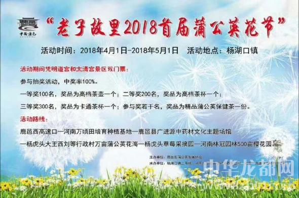 老子故里2018首屆蒲公英花節(jié)將于4月1日正式拉開序幕。此次活動(dòng)將持續(xù)到5月1日,賞花期長達(dá)一個(gè)月。(周口報(bào)業(yè)全媒體記者 李瑞才 通訊員 郭紅民 攝)