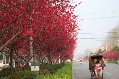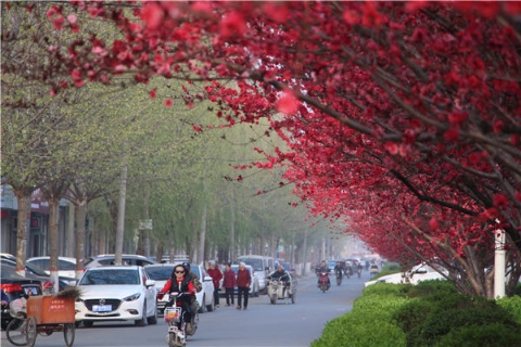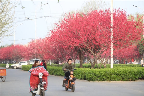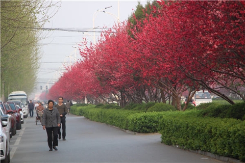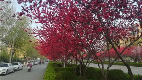 楊樹、垂柳、法桐,這是常見的綠化樹,可是你見過整條道路用桃樹做綠化的嗎?在周口市建設大道西段,長達1公里的主干道兩側(cè)種滿桃樹?,F(xiàn)在正值陽春三月桃花盛開,整條道路成了一片花的海洋,儼然是鬧市區(qū)里的世外桃源。