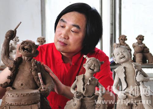 用鄭州大學(xué)汪振軍教授的話說:“張振福是河南第一個給泥塑穿上鈞瓷衣服的人,也是第一個跨越泥塑與鈞瓷兩界的藝術(shù)家。傳統(tǒng)鈞瓷是在一件作品上蘸一種釉,而張振福的鈞瓷泥塑的不同之處在于局部抹釉、一件作品用幾種配方不同的釉。我們知道,鈞瓷的神奇之處在于它的窯變,在于它美麗的色彩。而張振福鈞瓷泥塑既保留了泥塑有趣的造型,又吸收了鈞瓷色彩豐富的優(yōu)點,大大增強(qiáng)了傳統(tǒng)泥塑的藝術(shù)表現(xiàn)力。這就是一個難得的藝術(shù)創(chuàng)新!”