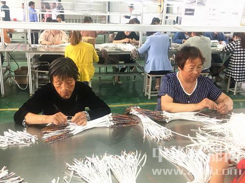 中華龍都網(wǎng)訊(周口報(bào)業(yè)全媒體記者 王泉林)沈丘縣石槽集鄉(xiāng)劉腰莊扶貧車間內(nèi),工人正在有條不紊地工作。沈丘縣大力推進(jìn)優(yōu)勢產(chǎn)業(yè)、龍頭企業(yè)參與產(chǎn)業(yè)扶貧,由政府建設(shè)扶貧車間,企業(yè)租用車間開展產(chǎn)業(yè)扶貧,收入歸村集體經(jīng)濟(jì),用于發(fā)展村級(jí)事業(yè)和扶貧。扶貧車間吸納附近貧困戶和村民前來就業(yè),僅凱旺電子科技有限公司一家企業(yè)就經(jīng)營扶貧車間27個(gè),吸納貧困群眾360多個(gè)。