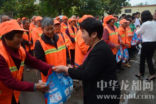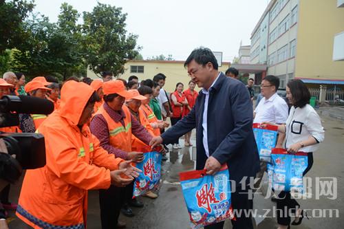 當(dāng)天,西華縣萬果園商貿(mào)有限公司自發(fā)組織來到該縣城管局,向一線城管人員表達(dá)敬意,并向他們捐贈(zèng)價(jià)值2萬余元的毛巾、洗衣粉等愛心物資。