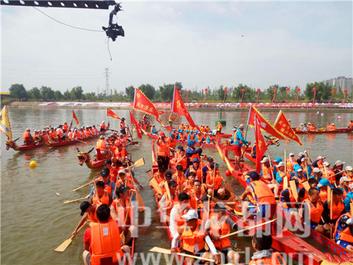 精彩無比的翎船捕鴨賽后,首先進(jìn)行的是市直組、企業(yè)組200米競速賽的預(yù)選賽。隨著發(fā)令槍響,各參賽隊(duì)伍迅速搖動(dòng)船槳,爭先恐后地向前劃行。在兩岸觀眾一浪高過一浪的吶喊助威聲中,參賽隊(duì)頑強(qiáng)拼搏,競相沙潁河上飛渡,不僅點(diǎn)燃了市民傳承龍舟文化的熱情,也點(diǎn)燃了周口人民的競進(jìn)激情。