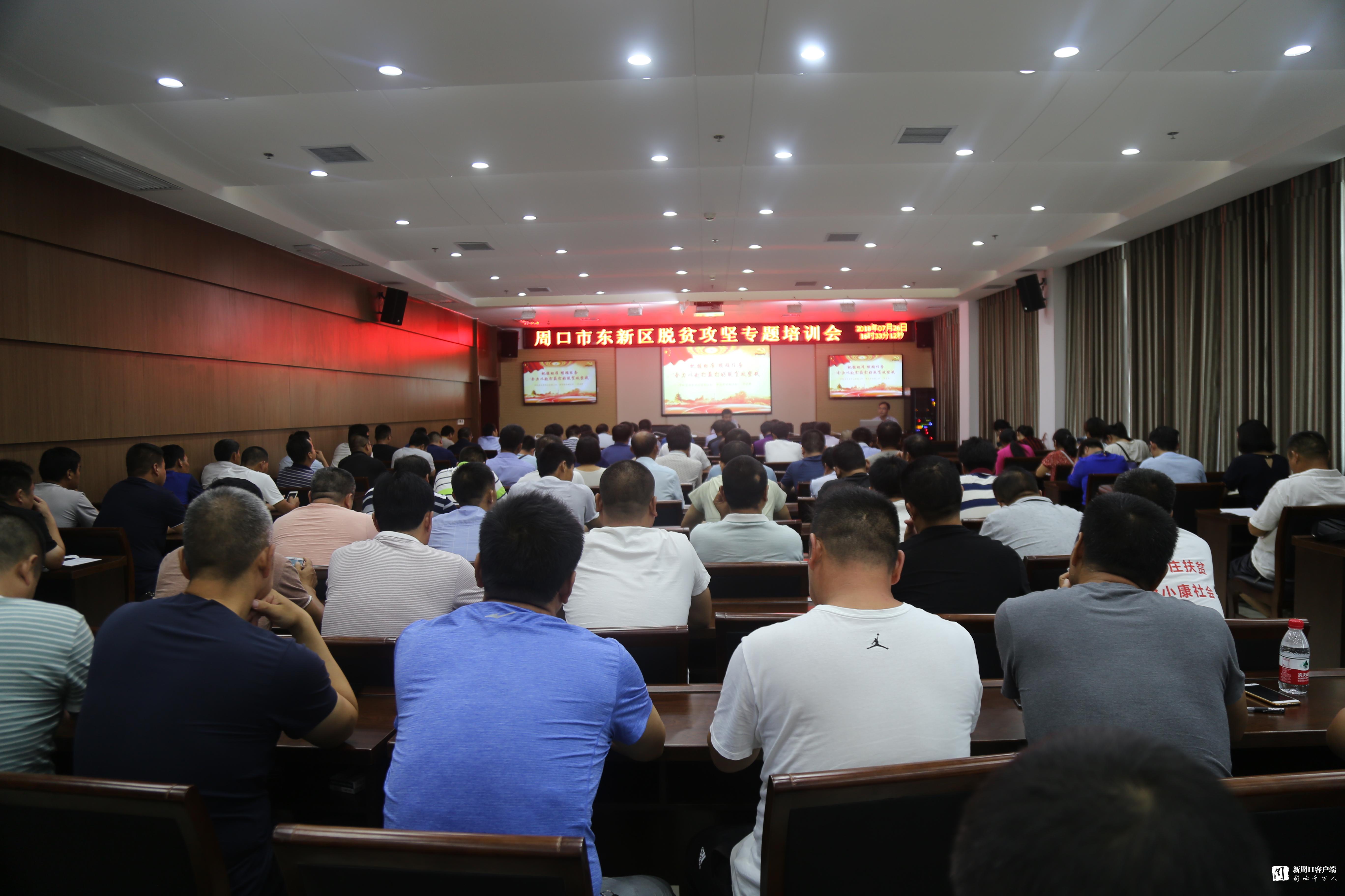 周口日?qǐng)?bào)·新周口客戶端記者 張勁松 通訊員 蘇千 王玉鳳 文/圖 7月26日下午,東新區(qū)召開全區(qū)脫貧攻堅(jiān)專題培訓(xùn)會(huì),管委會(huì)副主任李湛主持會(huì)議,各鄉(xiāng)(辦)和區(qū)直單位相關(guān)負(fù)責(zé)人,全區(qū)49個(gè)行政村責(zé)任組組長(zhǎng)、支部書記、村主任、黨建聯(lián)系人,9個(gè)重點(diǎn)村第一書記及區(qū)扶貧辦相關(guān)人員共計(jì)300余人參加會(huì)議。