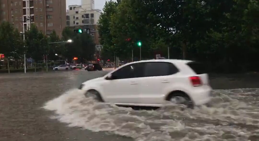 記者在周口市東新區(qū)觀察到,降水從26日下午4點(diǎn)多開(kāi)始,一直持續(xù)到夜間,其間伴有雷電和大風(fēng)。26日傍晚6時(shí)許,記者在周口市文昌大道看到,積水嚴(yán)重的地方已經(jīng)淹沒(méi)了自行車(chē)大半個(gè)輪胎,一些行人涉水而行,車(chē)輛則猶如沖浪前進(jìn)。