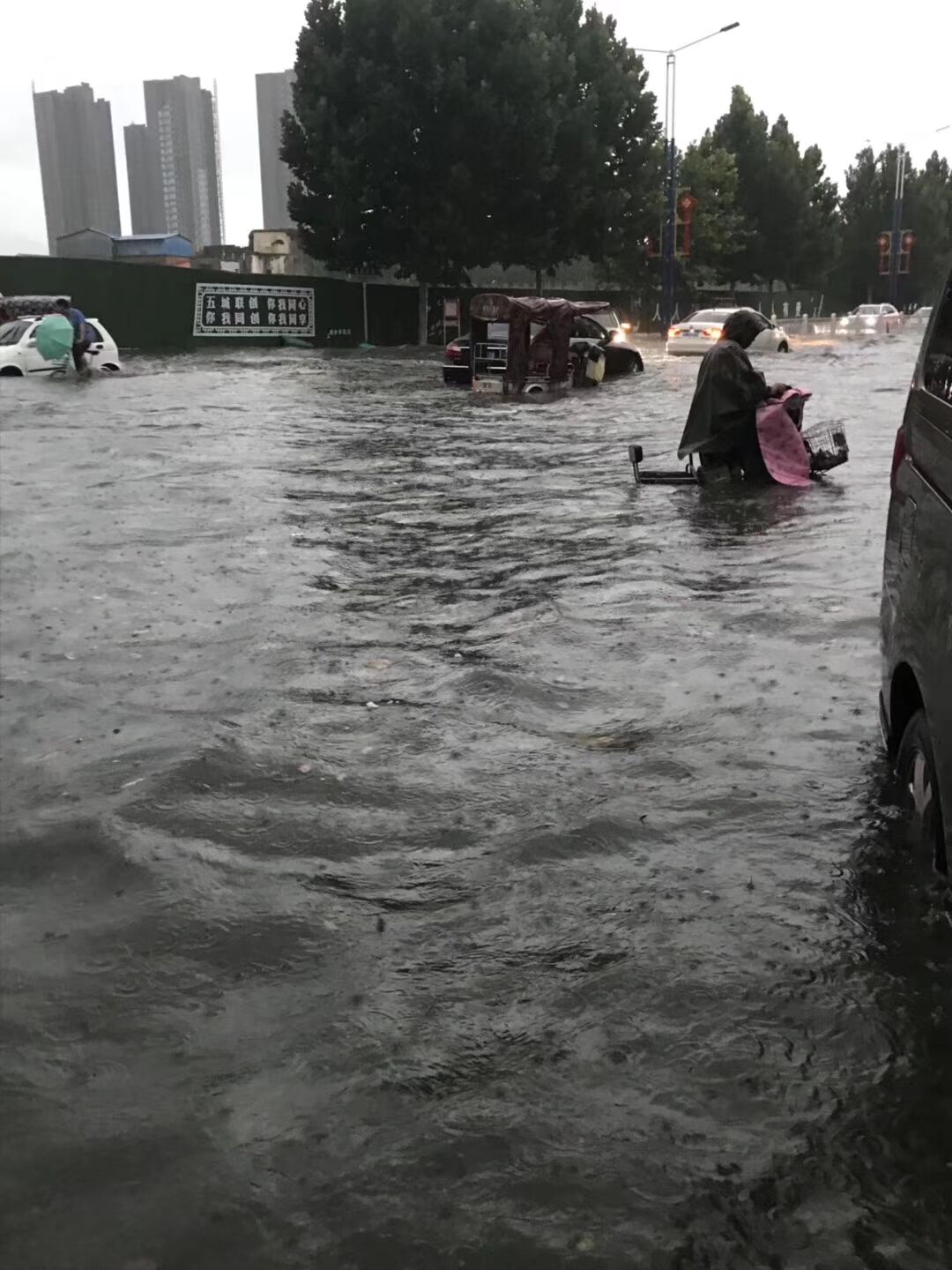 26日下午,一場(chǎng)暴雨突降周口。降雨帶來(lái)些許清涼的同時(shí),也給城市生活帶來(lái)不便。周口城區(qū)多條道路變成“澤國(guó)”。
